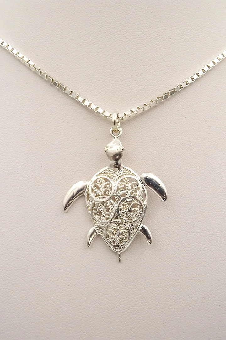 Découvrez notre magnifique pendentif tortue avec sa carapace délicatement sculptée en filigrane. Symbole de sagesse et de longévité, cette tortue est disponible en argent, laiton plaqué Or et Or 750/1000, s'adaptant ainsi à tous les styles. Accrochez ce bijou unique à une chaîne et laissez-le briller avec élégance. Un cadeau parfait pour les amateurs de nature et de bijoux raffinés. Commandez dès maintenant ce pendentif tortue et ajoutez une touche de grâce et de charme à votre collection de bijoux.